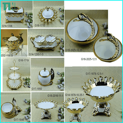 - Chất liệu: Gốm/sứ cao cấp mạ màu vàng hoặc vàng 24k theo yêu cầu.