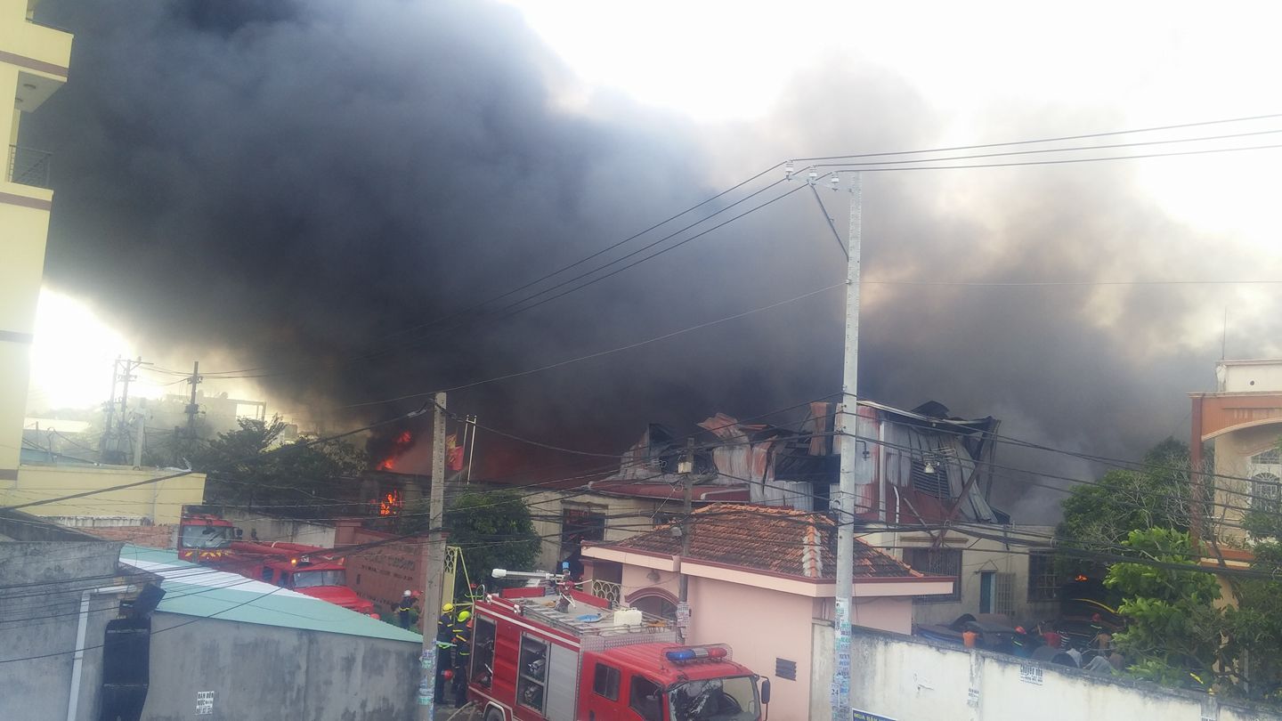 | Lửa lan nhanh kèm theo cột khói đen khổng lồ |